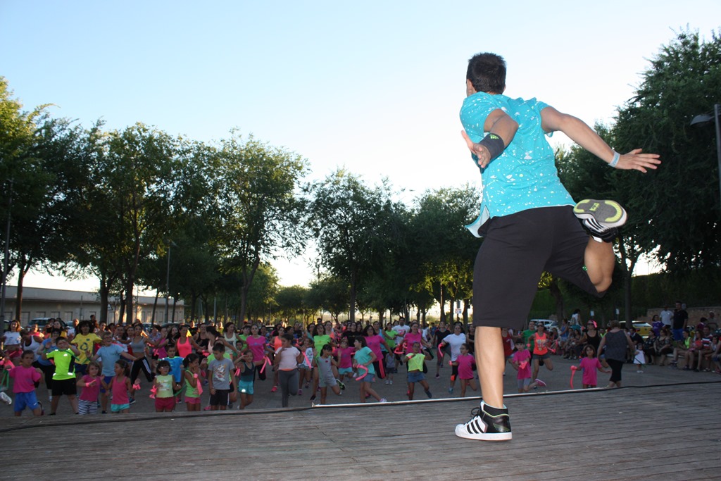 La Solana · El Master Class de Zumba organizado por la Sala de Baile ‘Nuevo Ritmo’ a beneficio de la Asociación Española Contra el Cáncer consiguió una recaudación total de 1.550 euros y la participación de cientos de solaneros de todas las edades. Los solaneros apelaron a la solidaridad en una actividad celebrada en el bulevar del Parque Municipal que desbordó todas las previsiones, agotando las quinientas papeletas a la venta. La respuesta fue multitudinaria y el resultado un éxito. Toda clase de público disfrutó del baile y del ejercicio al aire libre a través de las indicaciones del promotor y gerente de la Sala de Baile ‘Nuevo Ritmo’, Diego Jesús Mateos-Aparicio. Durante más de una hora, se movieron al son de una veintena de las canciones más pegadizas del momento, en una sesión con mucha complicidad entre el monitor y los participantes.