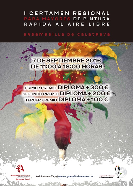 Argamasilla de Calatrava · El ayuntamiento de Argamasilla de Calatrava, a través de la concejalía de Bienestar Social, ha organizado el I Certamen de Pintura Rápida para Mayores, que se celebrará el próximo 7 de septiembre entre las 11:00 y las 18:00 horas. El concurso está dotado con tres premios para los mejores trabajos, de 300, 200 y 100 euros más diploma. La técnica es libre y la temática es “Argamasilla y su entorno”. Argamasilla de Calatrava, como ciudad perteneciente a la red de ciudades educadoras, sigue apostando por iniciativas destinadas a fomentar la participación en actividades culturales. En este caso la propuesta se dirige a pensionistas jubilados, también por invalidez, personas mayores de 60 años, con independencia de la situación socio laboral o cónyuge de alguno de los mencionados.
