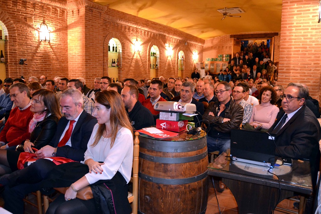 Anoche, la sala de catas de El Progreso se quedó pequeña para asistir al acto que protagonizó César Lumbreras, quien fuera Premio Nacional Vinos Ojos del Guadiana hace años, en el que participaron también la alcaldesa de Villarrubia de los Ojos, Encarnación Medina; la directora general de Agricultura y Ganadería, Cruz Ponce; el presidente de la Cooperativa, Cesáreo Cabrera; Santos Sanz, director territorial de Banco Santander en Castilla-La Mancha, y Marcelo López, técnico de la PAC de esta entidad bancaria; y cientos de socios de El Progreso, que abarrotaron el local.
