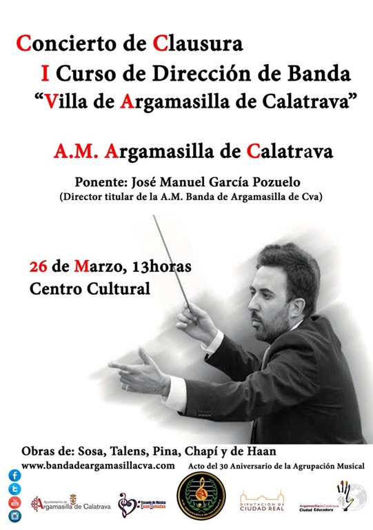 oretania.es · Argamasilla de Calatrava · Los días 25 y 26 del presente mes de marzo se impartirá en Argamasilla de Calatrava un curso de Dirección de Bandas, que se enmarca dentro de las actividades organizadas para celebrar el XXX Aniversario desde la creación de la agrupación musical rabanera. Como clausura del curso se ofrecerá, el domingo 26 de marzo, a partir de las 13:00 horas, un concierto en el que el ponente principal será el director de la agrupación musical de Argamasilla de Calatrava , José Manuel García Pozuelo.
