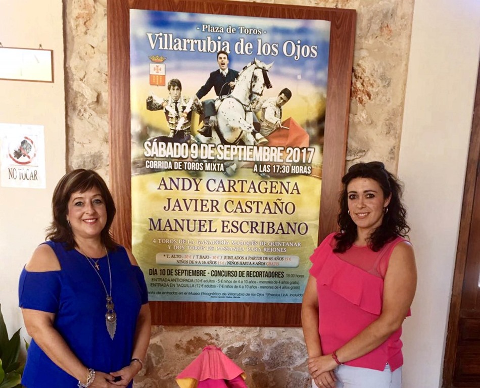 Villarubia de los Ojos · Ayuntamiento de Villarrubia de los Ojos ha presentado de forma oficial el cartel de los festejos taurinos que van a celebrarse próximo mes de septiembre, durante la Feria y Fiestas 2017, en honor a la Patrona de la localidad, la Virgen de la Sierra. El plato fuerte de la feria taurina tendrá lugar el sábado 9 de septiembre a las 17.30 horas, con una corrida mixta en la que participarán el rejonero Andy Cartagena y los matadores Manuel Escribano y Javier Castaño.