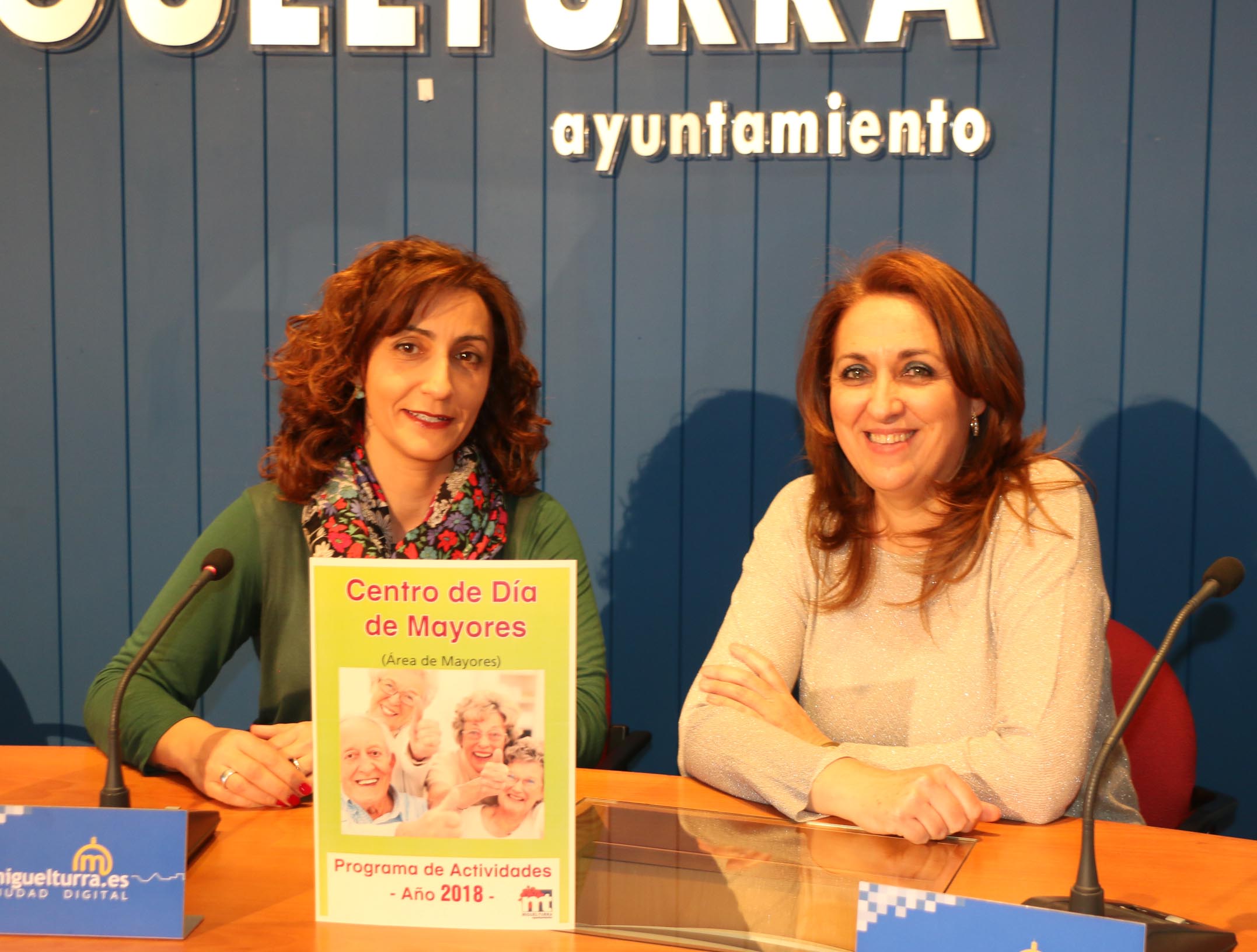 La concejala responsable del área de Mayores del Ayuntamiento de Miguelturra, Fátima Mondejar, acompañada por la directora del Centro de Día de Mayores, Marisa Gómez, presentaba el programa de actividades del Centro de Día de Mayores organizado para este año 2018.