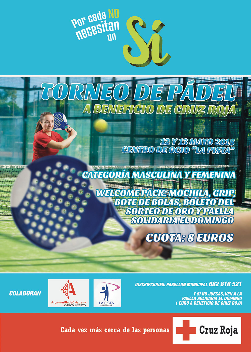 El Ayuntamiento de Argamasilla de Calatrava va a colaborar en la organización de un torneo de pádel solidario a beneficio de la delegación local de Cruz Roja Española y que se desarrollará los días 12 y 13 de en la instalaciones del Centro de Ocio ‘La Pista’.