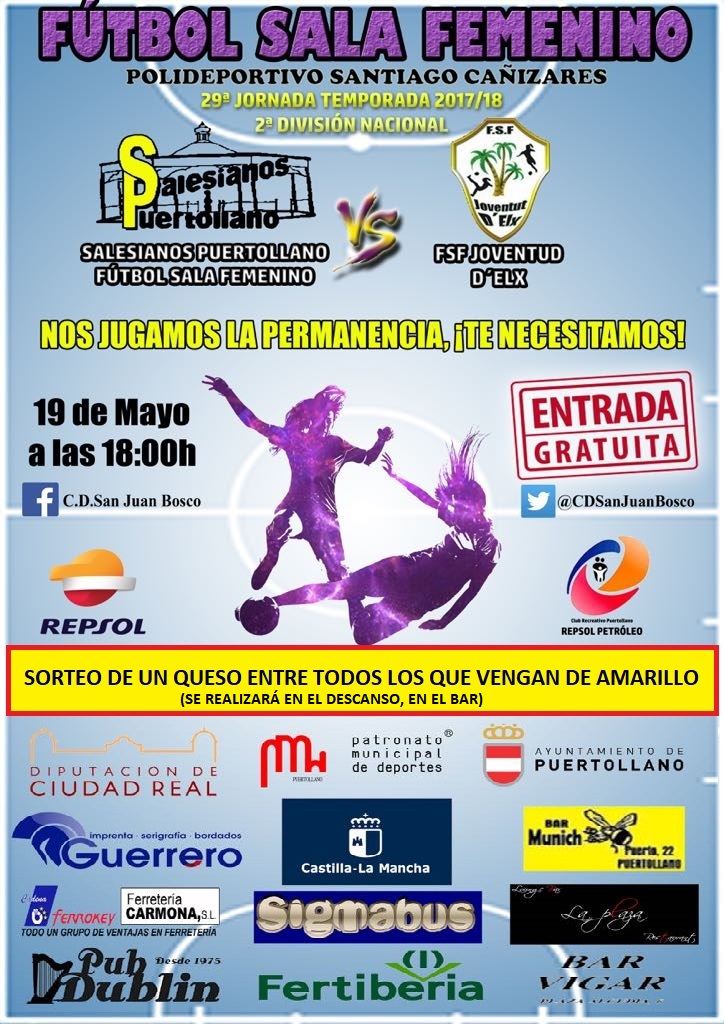 Hacemos un llamamiento a toda la afición del Salesianos Puertollano y a los amantes del futbol sala para que vengan a animar a las chicas en un partido de máxima importancia.