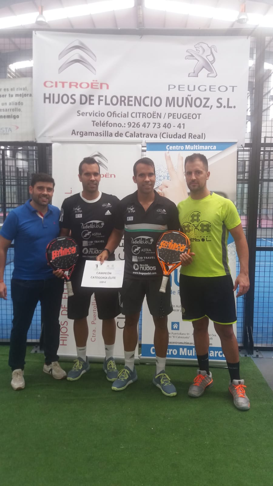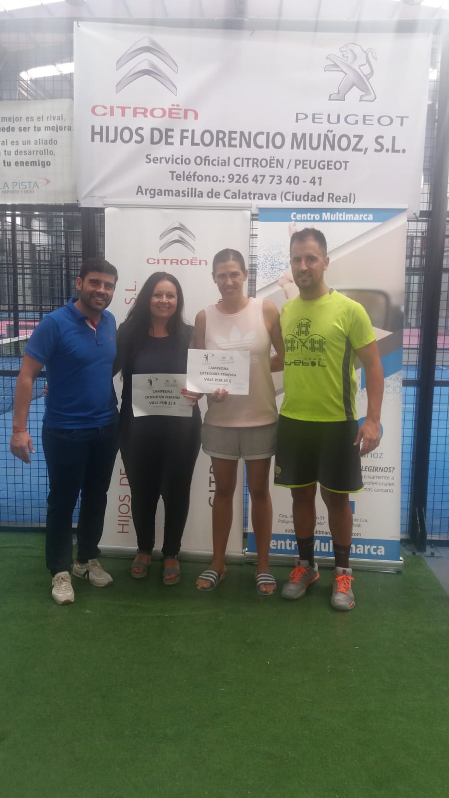 El pasado fin de semana se celebró en el Centro de Deporte y Ocio La Pista el IV Torneo de Pádel “Hijos de Florencio Muñoz Citröen Peugeot”, donde los jugadores Javier Romero y Eduardo Romero se alzaron con la victoria de la categoría masculina y en la categoría femenina las vencedoras fueron Ángela Coleto e Isabel Alcaide.