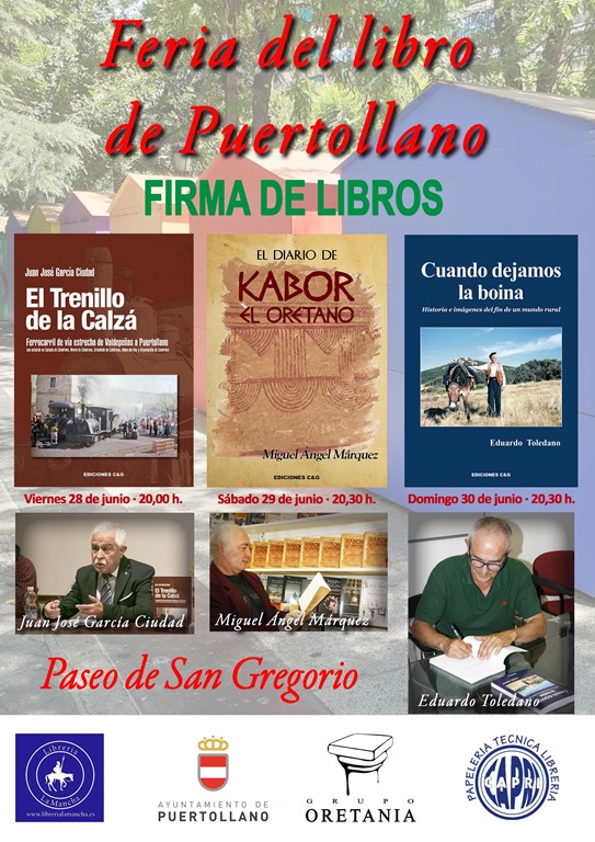 El historiador Juan José García Ciudad, es la primera de las firmas programadas por Ediciones C&G, en la Feria del Libro de Puertollano (FELIP´19), mañana viernes, 28 de junio, a partir de las 20,00 horas, el autor de “El Trenillo de la Calzá. Ferrocarril de vía estrecha de Valdepeñas a Puertollano”, tendrá un encuentro con sus lectores y firmará ejemplares de su libro, en una de las casetas que el ayuntamiento de Puertollano ha dispuesto para promocionar la lectura.
