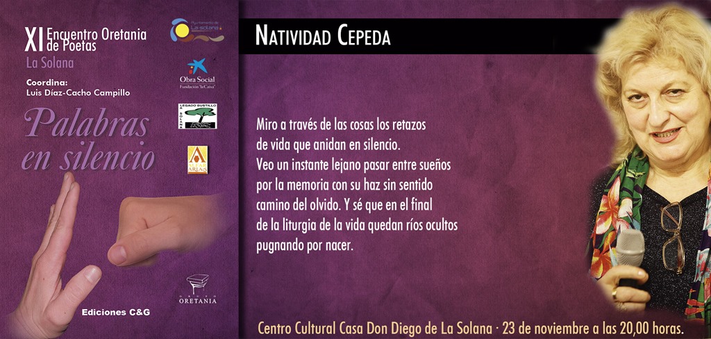 Al abrigo de Julio Criado y Luis Díaz-Cacho Campillo, se llena de metáfora y hallazgos poéticos el idioma materno del libro “Palabras en silencio” gracias a Jesús Alfredo Sánchez, Antonia Cortés, Antonia Piqueras, Charo Bernal, Cristina Díaz, Diana Rodrigo, Elisabeth Porrero, Eloísa Pardo, Eusebio Loro, Juan José Guardia, Luis Díaz- Cacho, Luis Romero de Ávila, Manuel Muñoz, Mari Carmen Romero de Ávila, María Antonia García, María José Redondo, Martin Gómez, Miguel Galanes, Pilar Serrano, Ramón Aguirre, Santiago Romero de Ávila, teresa Sánchez y Natividad Cepeda que escribe esta crónica .