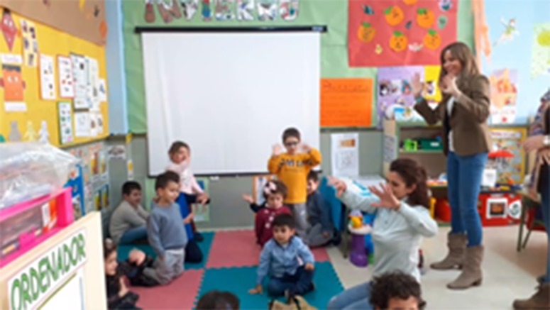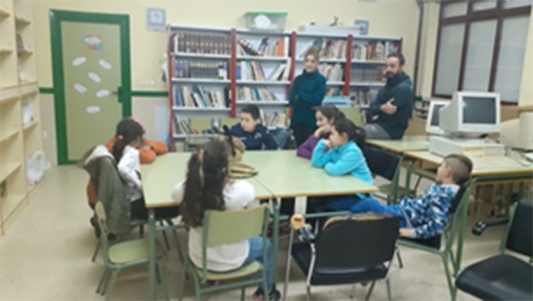 Colegio  El Santo de La Solana (Ciudad Real). Fotografía de M. Ángel Márquez—“Ya habíamos empezado a difundir conceptos entre el público, pero hacía falta focalizar la atención en los más pequeños. Ellos son el futuro, y, por tanto, ellos deben tener consciencia de nuestro pasado” —nos comenta Yolanda de La Cruz.