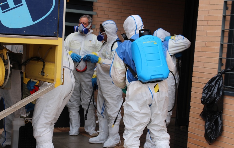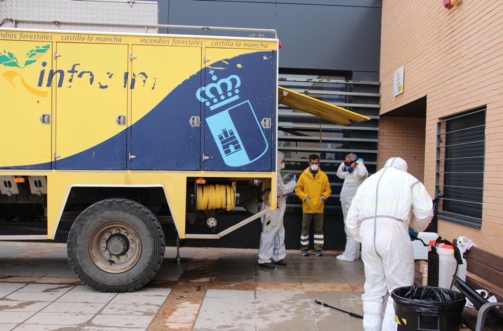 “Tenemos que arrimar todos el hombro y nuestra misión es desinfectar donde nos digan, intentando abarcar lo máximo posible”, declaró a la prensa local David Rodríguez, preparador físico de bomberos. Es la segunda vez que un equipo de la empresa pública GEACAM (Gestión Ambiental de Castilla-La Mancha) viene a La Solana, con el encargo de limpiar viviendas tuteladas, residencias de mayores u otras zonas sensibles, igual que hacen en el resto de municipios y pedanías de la provincia.