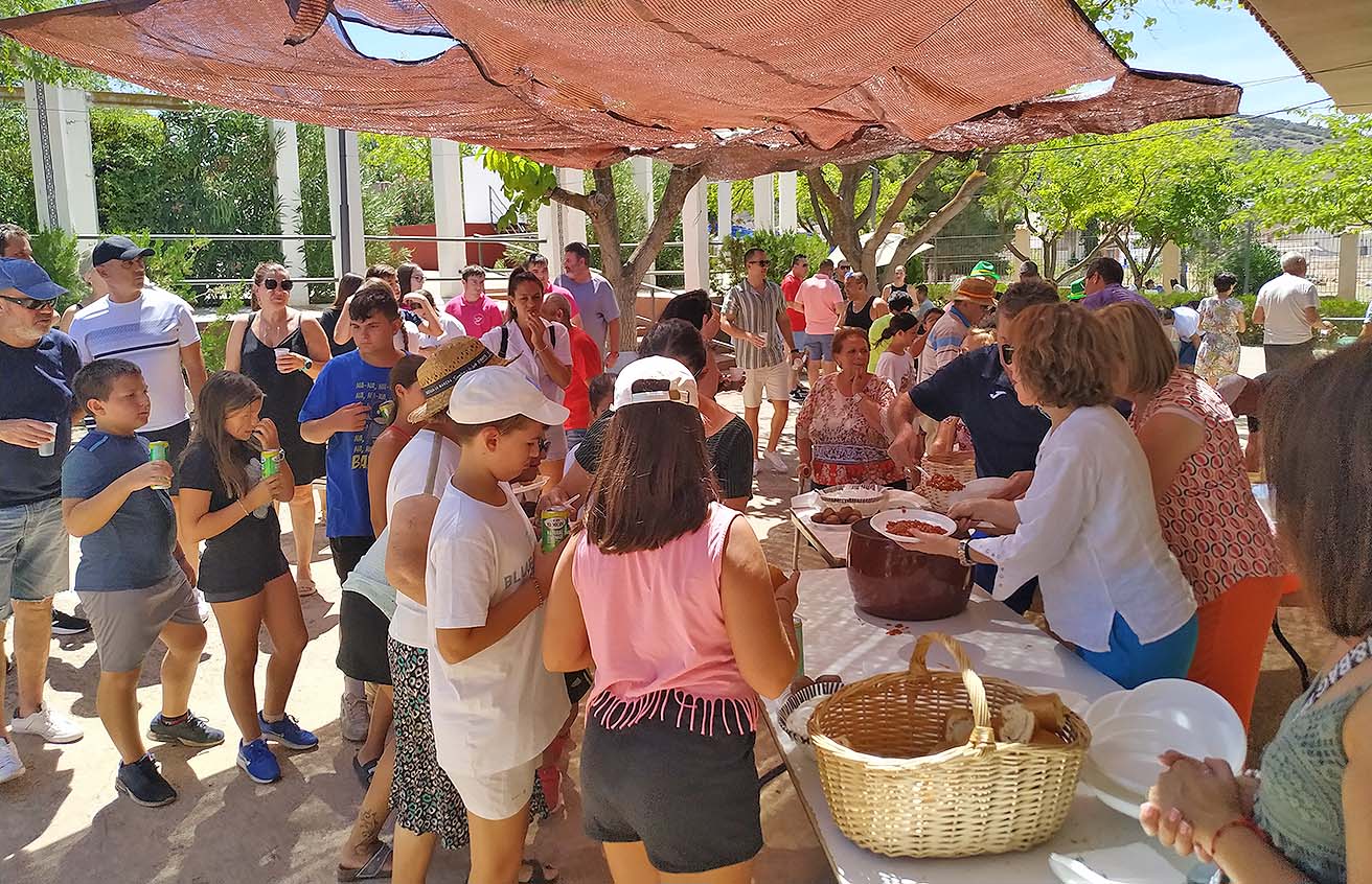 Unas mil generosas raciones alimenticias se han repartido en el vigésimo aniversario de la ‘Comida de Hermanamiento de Asociaciones, Peñas y Vecinos/as’ en la localidad de San Carlos del Valle, el 20 de agosto de 2023, con motivo de la XXXV Semana Cultural en honor a Santa Elena, de un amplio y variado menú compuesto entre otras viandas, de patatas cocidas, paella, fideuá, macarrones, caldereta, pisto con carne, ensaladilla rusa, migas con choricillos fritos y para postre, además de la degustación de melón de la tierra, una exquisitez elaborada por la asociación de mayores cristeños, ‘Rebanadas con vino y azúcar’, toda una maravilla de postre tradicional. Todo ello regado abundantemente con ‘Zurra Manchega’ y limonada.