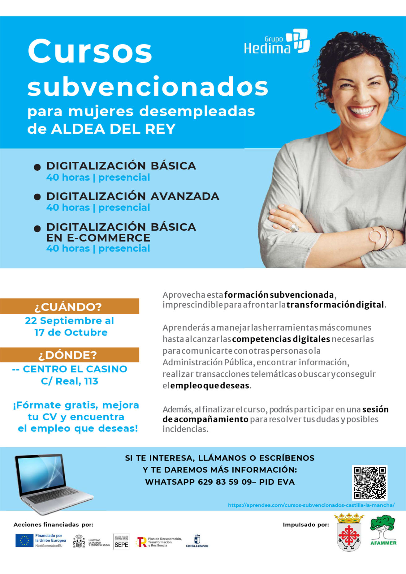 Cabe decir que el Grupo Hedima y la Consejería de Economía, Empresas y Empleo de la Junta de Comunidades de Castilla – La Mancha formarán a 1.968 mujeres residentes en la provincia de Ciudad Real en el marco de implementación de las medidas desarrolladas en el Plan de Recuperación, Transformación y Resiliencia.