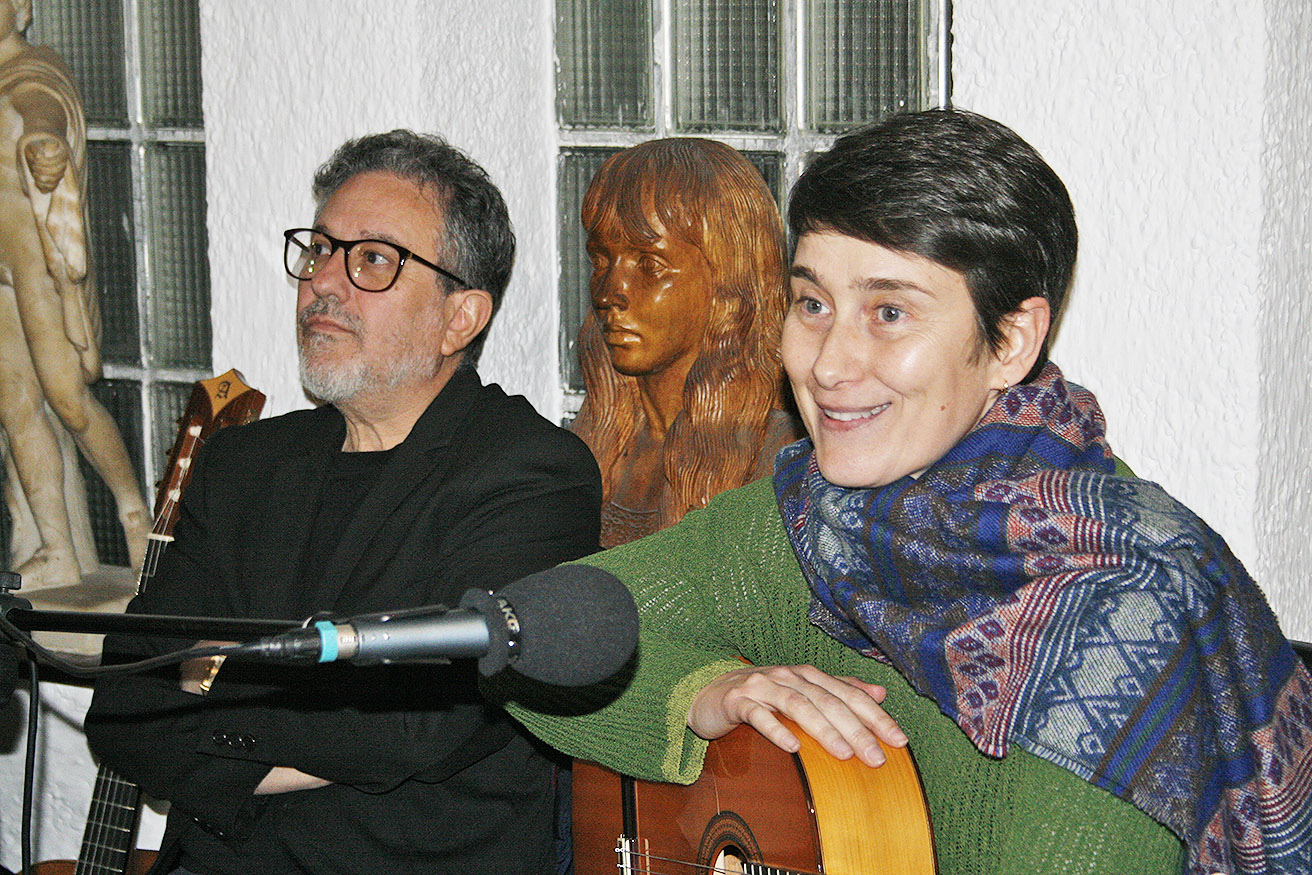 Subrayó la conexión entre pintura y poesía, ensalzando, asimismo, como también harían el resto de personas intervinientes, el necesario condimento musical que ponían los cantautores Vicente Castellanos y María de Toro, todo lo cual suponía una invitación para disfrutar del encuentro y para seguir transformando el pasado en futuro a través del arte.