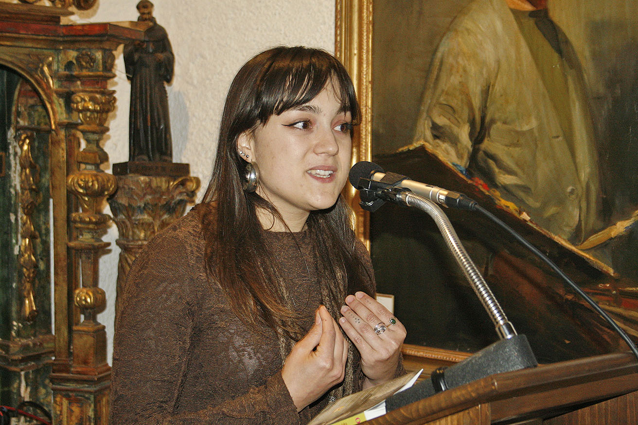 A continuación, Diana Rodrigo, prologuista del libro, deleitó a los presentes dando lectura al mismo, una reflexión poética sobre el tiempo, recurriendo a la mitología griega para distinguir entre Cronos y Kairos, e invitando a adentrarse en los versos de la antología como una forma de vivir intensamente el presente.