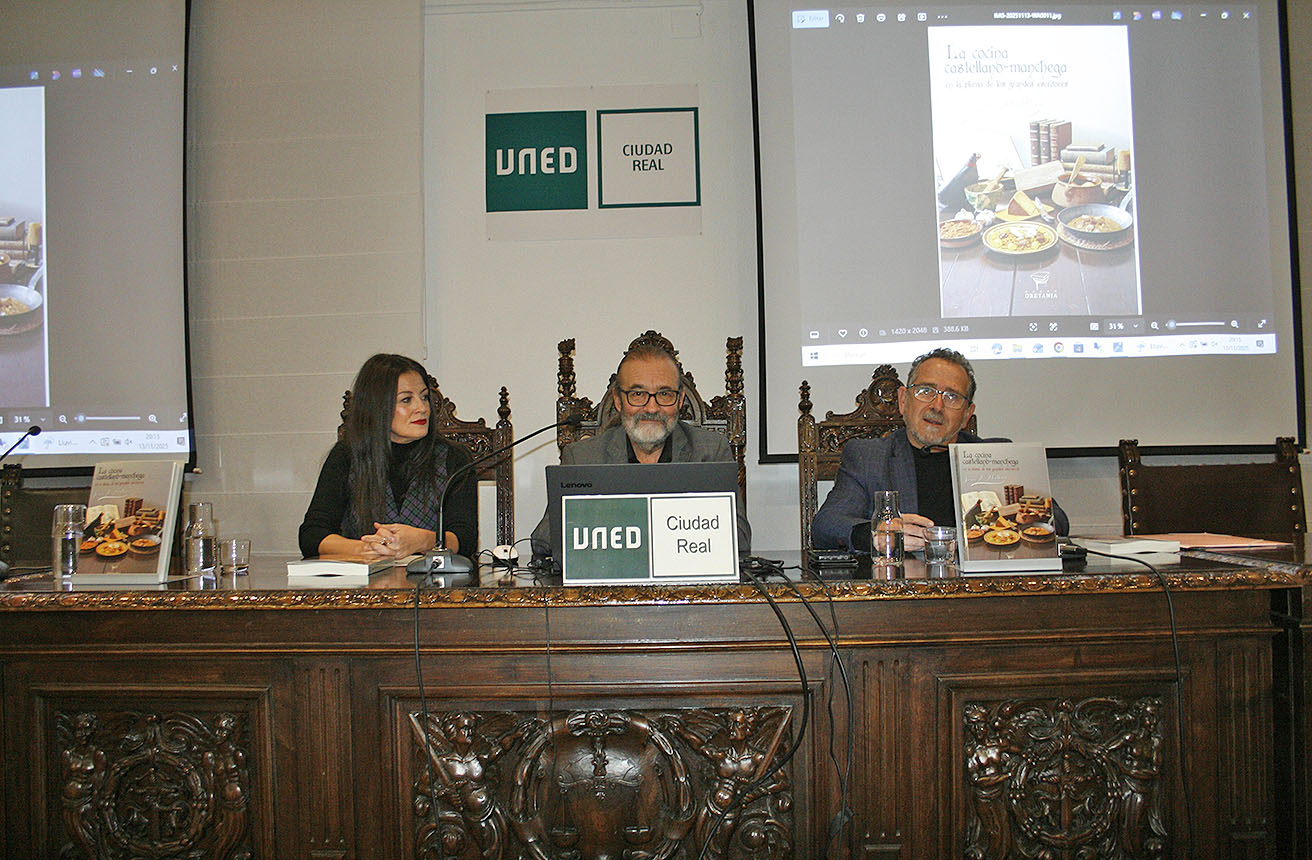 “La cocina castellano-manchega en la pluma de los grandes escritores”, de Joan A. Abellán, editado por el Grupo Oretania, fue presentado en el salón de actos del Centro Asociado Provincial «Lorenzo Luzuriaga» (UNED) de Valdepeñas. El acto estuvo dirigido por el director del centro, Domingo Fernández Maroto y participaron, además del autor, Palmira Peláez Fernández, presidenta de la Asociación para la investigación y el desarrollo cultural Orisos; María del Mar Marqués Sánchez, presidenta de la Asociación Cultural Gastronómica Duelos y Quebrantos de Valdepeñas y concejala delegada de Servicios Sociales y Sanidad del Ayuntamiento de Valdepeñas; y Luis Díaz-Cacho Campillo, poeta, escritor y coordinador del Grupo Oretania.