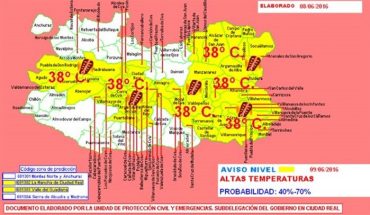 Ciudad Real · Emergencia alerta con Nivel Amarillo por temperaturas máximas para el día 9 de junio en Ciudad Real: (La Mancha, Valle del Guadiana). Emergencia alerta con Nivel Amarillo por temperaturas máximas para el día 9 de junio en Ciudad Real: (La Mancha, Valle del Guadiana). Mapas de Aviso, elaborados...